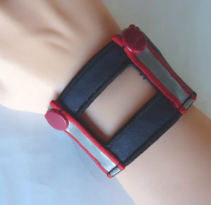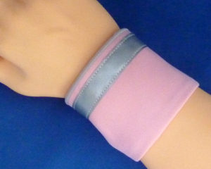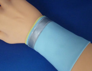 上記の赤いシールの所が「内関」のツボ。スナップボタンの吊りバンドがちょうどツボの所にきます。