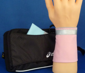 ハンカチを裏返せば(時計を外して)、リストバンドにもなります。