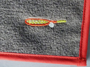 ラケットの横・下にイニシャル・チーム名・名前など刺繍できます。文字数やサイズにより価格が異なりますので弊社にお問合せ下さいませ。