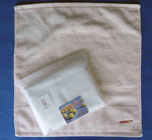 写真は、ハンドタオル(専用ビニールポーチ付き)