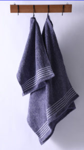今回は、フェイスタオル中央部にハンキング用ループを縫い付けていますので、バスルーム・キッチン・リビングなどフックがあればどこにでも掛けてお使いいただけます。