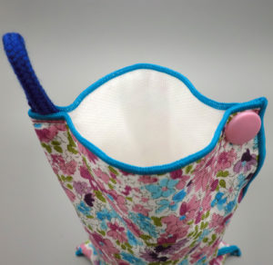 ◎青枠の所は、突起部分は腕に装着しても生地がめくれないよう2枚合わせ。時計のバンド吊り部分も、長く使用しても伸びないように2枚合わせ。