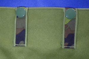 表がオリーブドラブ、裏がオレンジ、3点ボタン留め。登山・アウトドア・激しいスポーツ用