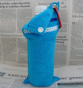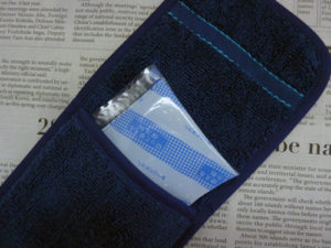 もともと、「アームはんかち」は弊社の実用新案商品。主にタオル地で作っていました。ある時、友人が金属アレルギーでお気に入りの腕時計が着けられず相談してきました。弊社のオリジナルの「アームはんかち」の上から着けるよう勧めると、時計のバンドの穴が足らないと云うので、生地の薄いマイクロファイバーで試作しました。当時も今も、マイクロファイバーで「アームはんかち」を作っている所はないようです。生地が高く、素材が薄いため製造が難しいからです。もちろん、原価を計算すると販売市場にだすと、定価が高く流通するのがむずかしそうです。ならば、弊社が製造販売すれば、お困りの方にお安く提供することが可能です。
