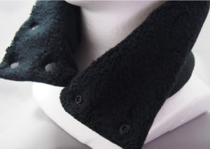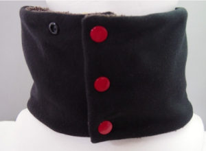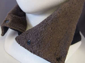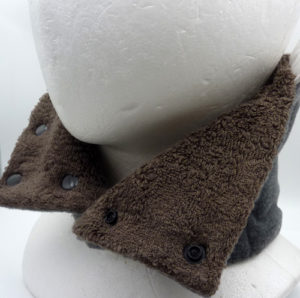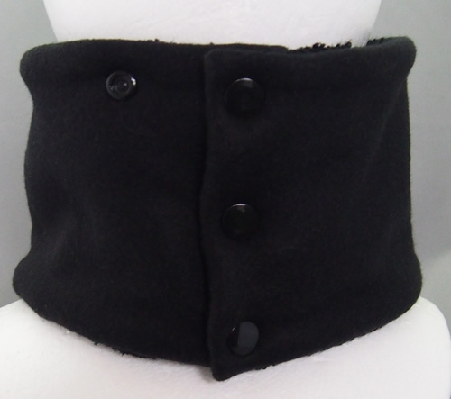 ボタンの組み合わせにより、マフラーやネックウォーマー,ダミーの襟に変身するすぐれもの。ボタンで留めるから髪型が崩れない。