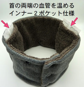 使い捨てカイロを入れるポケットが付いたアイデアいっぱいのネックウォーマー
