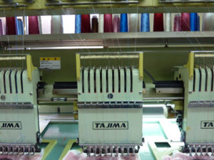 校章の刺繍データーを作れば、20センチを超えるハンカチ、ハンドタオル、フェイスタオル、スポーツタオル、バスタオル、Tシャツ、ジャンパーなど様々なものに刺繍が可能です。